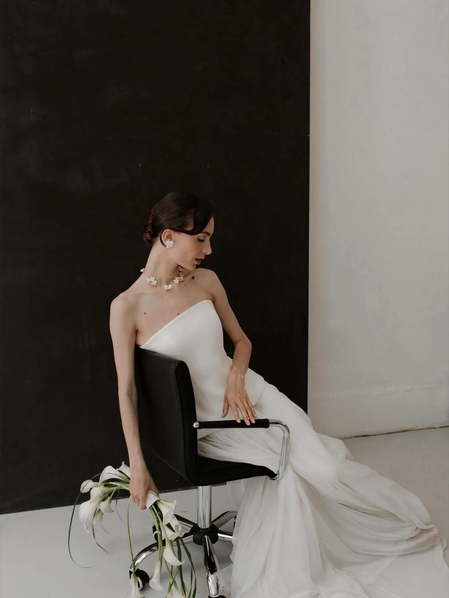 Chaque création, minutieusement confectionnée avec une soie d’exception, allie simplicité et sophistication. Les corsets, fabriqués sur mesure, sculptants et délicats, soulignent la silhouette avec grâce tout en offrant confort et soutien.
